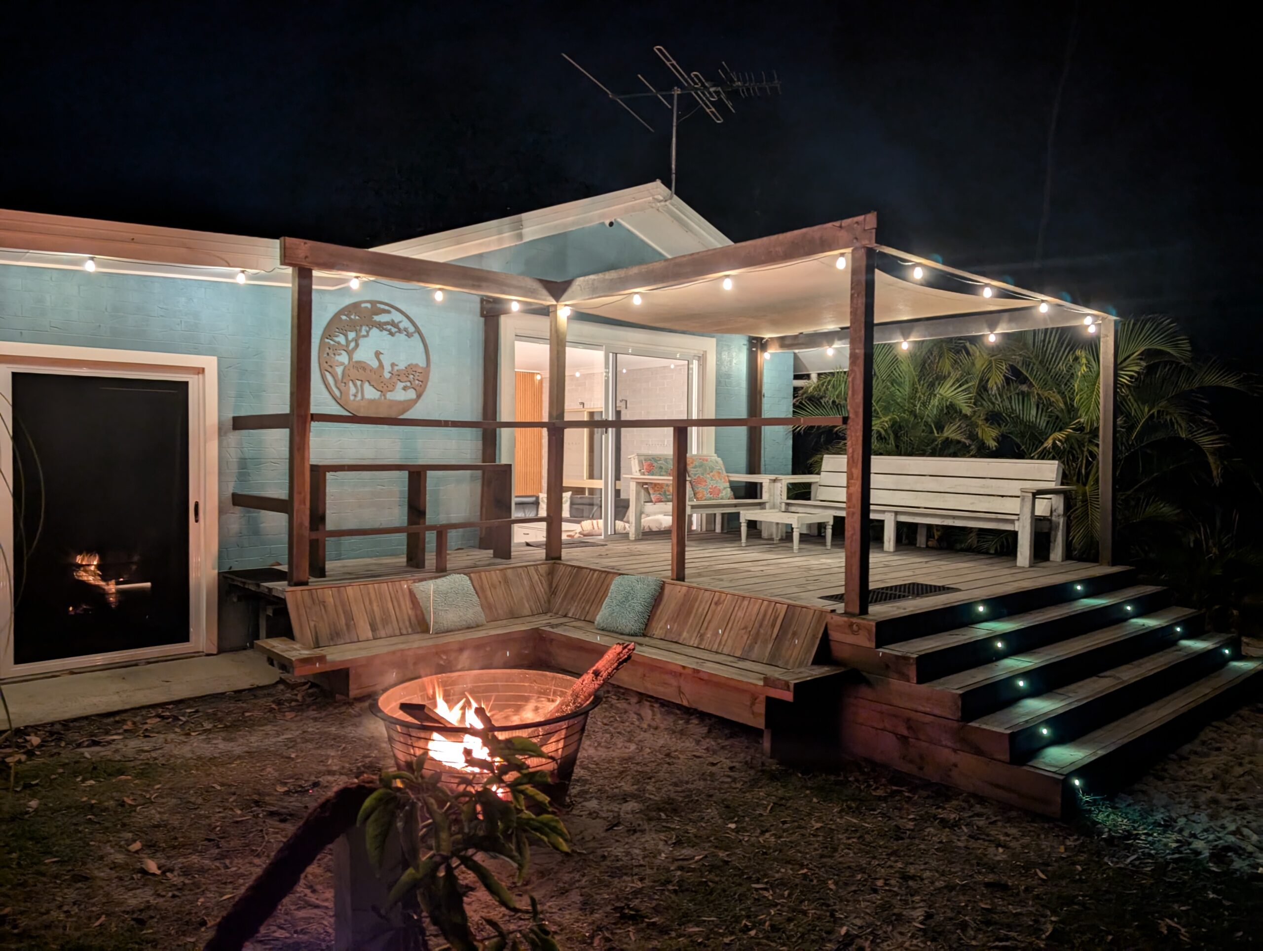 Watch the sun go down in the ocean from the picnic table on the beach. Chill in the shade of the gazebo on the front deck or enjoy a nice campfire from the comfortable corner bench.