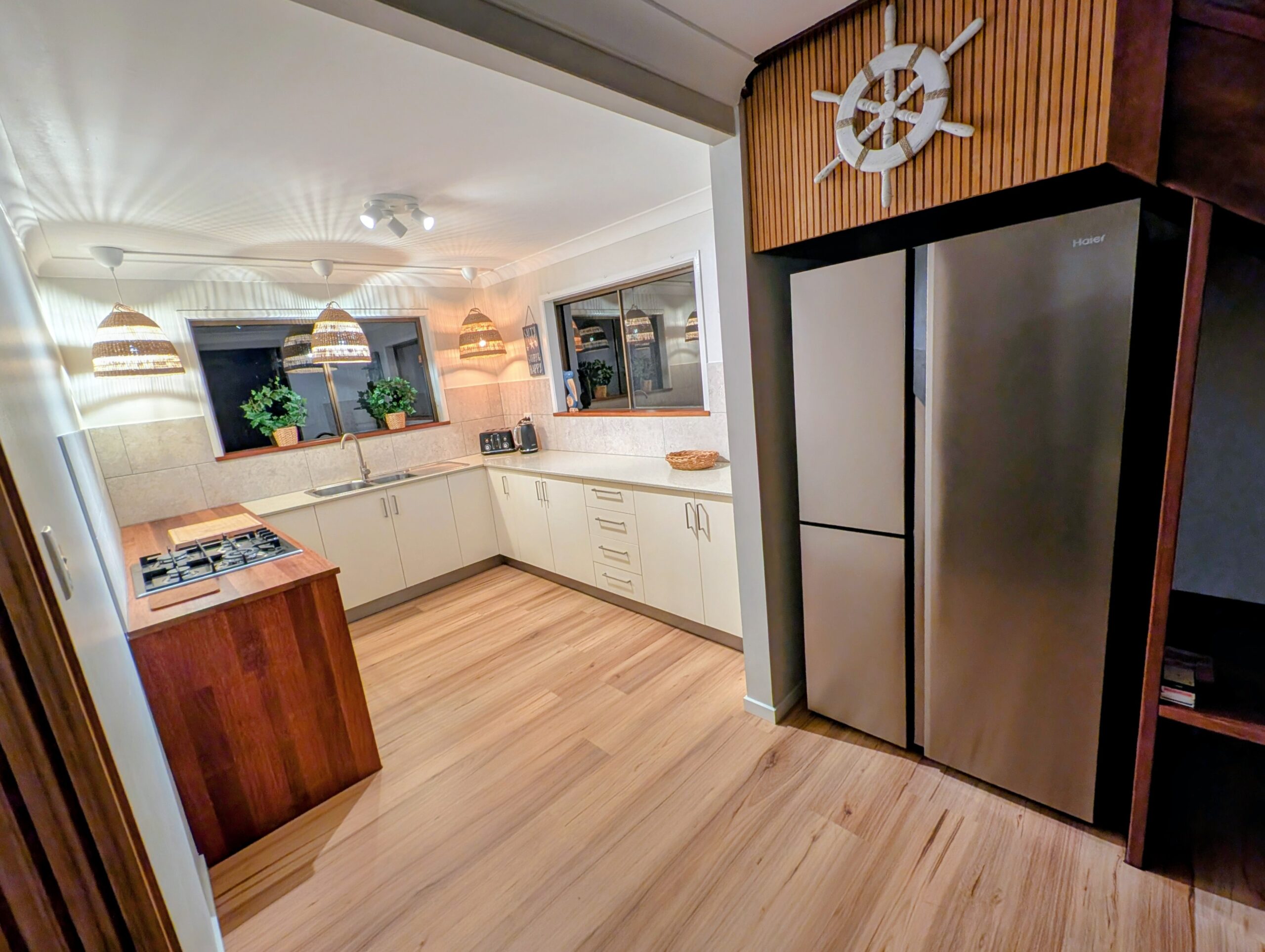 - Complete outside kitchen with barbecue, sink, stove and fridge.